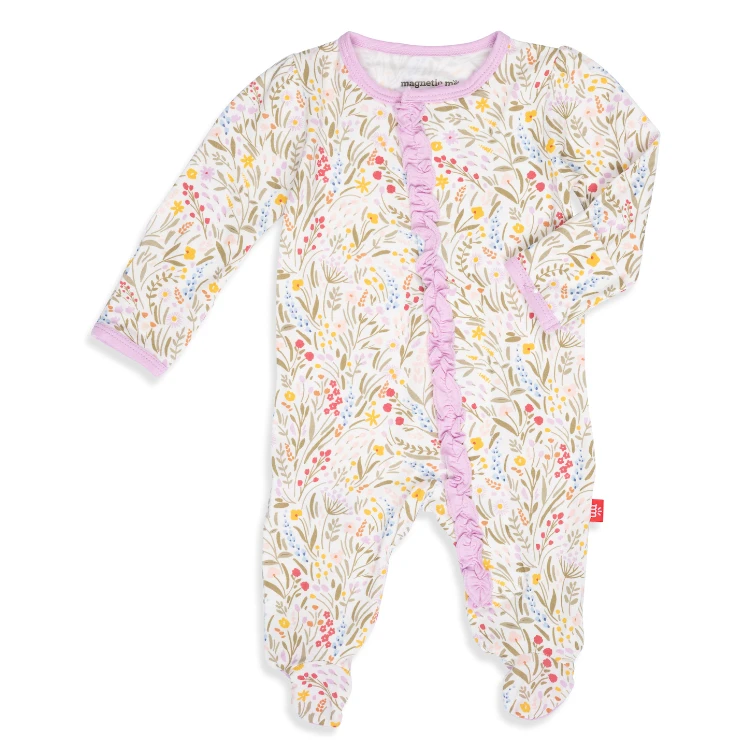 A soft, stylish all-day and all-night wardrobe staple with smart magnetic fasteners that makes changing time painless. With our no over-the-head design, simply open the outfit, insert baby, and BOOM, DONE! – the footie practically closes itself. Machine wash as directed.