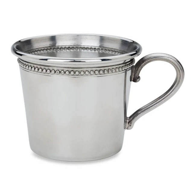 Designed with a beaded border on the lip, the Baby Beads Baby Cup from Reed & Barton offers classic good looks. Crafted in non-tarnish Pewter, this baby cup is polished for luster and is a wonderful way to honor the new arrival in your life. Part of the Baby Beads Collection. Elegantly packaged for gift-giving. Made in the USA. Classic beaded decoration In non tarnish Pewter Suitable for engraving H. 2 3/8″, Cap. 6 oz