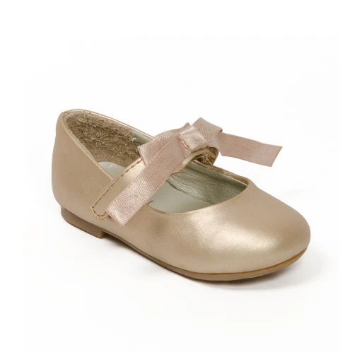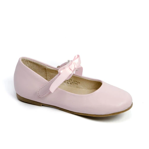 This ballerina is an all time favorite! Features a satin bow on the adjustable velcro strap. Can be removed for a more casual look! Synthetic upper leather lining, cushioned insole, rubber sole