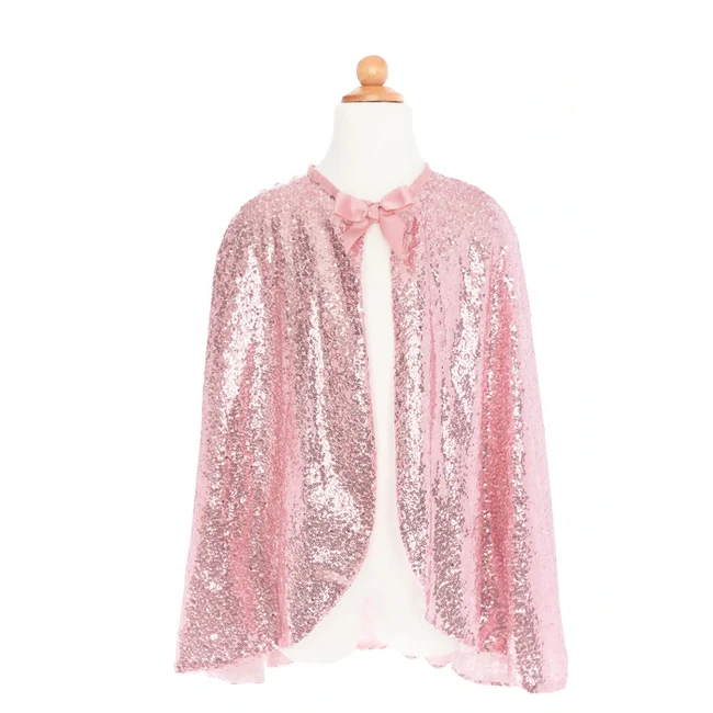Our NEW Pink Sequins cape is made with hundreds of hot pink sequins & lined with soft mesh. The cape has a beautiful pink bow at the velcro neck closure and pairs especially great with our Pink Sequins Butterfly Dress & Precious Pink Sequins Crown. This cape will sparkle when you move & is perfect for little ones who love to play dress-up!