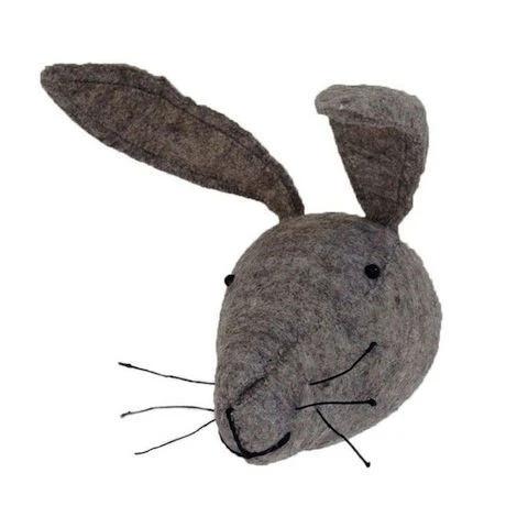 Appeals to both adults and children Great wall animal head for showing your fun side This cute grey hare oozes charm and character so family, friends will adore and like him Ethically handmade and crafted Felt and wool Outer – 100% felted wool, inner – 100% polyfil fibre Easy to hang with a single hook on the back supported by a bamboo cane inside. As this item is handmade it may vary slightly to the picture