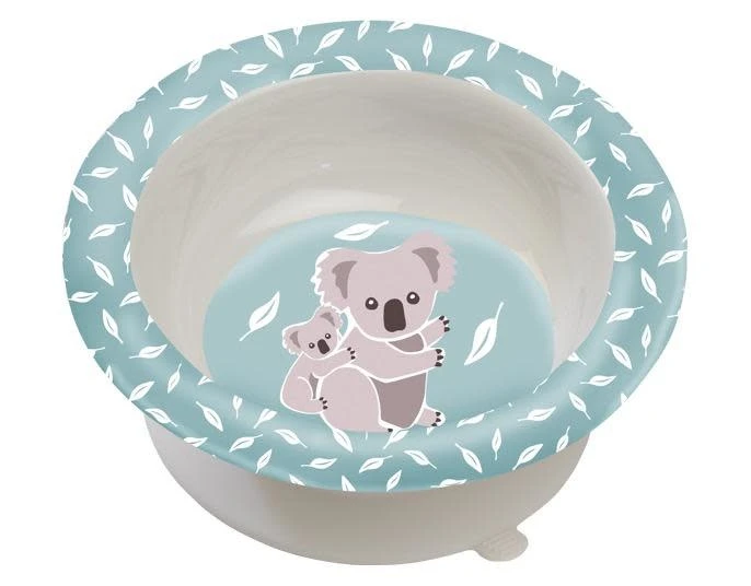 Spend mealtime with Kuddly Koalas™. The Kuddly Koala™ Suction Bowl sweetens up the table at mealtime. The removable suction base is designed to help keep the bowl in place on most smooth surfaces. Dishwasher safe, but remove suction base first. Hand wash for best results. Do not microwave. Melamine, while more durable than ceramic, is not unbreakable.