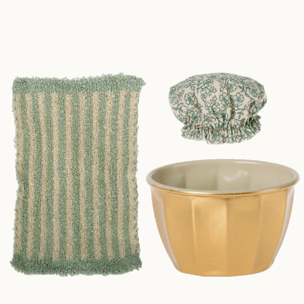Like everyone else, this mouse loves to spend hours in the warm water in the spa. This playset contains a golden bathtub, a mouse, and a towel.