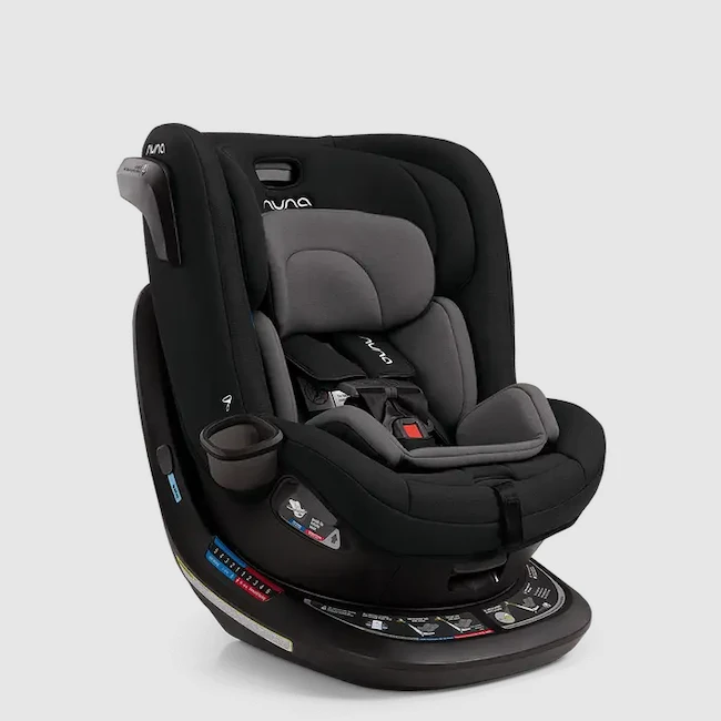 The Nuna REVV rotating convertible car seat is ready to revolutionize your travel experience. One simple install then rotate the seat 360° effortlessly for a stress-free easy-in, easy-out between adventures. The REVV converts from a rear to forward-facing car seat as your little one grows from newborn up to 40 pounds. The sleek lines provide a stylish look for you, while the luxurious fabrics and ventilation provide a comfortable ride for them. REVV provides security with Steel Strength Technology™, side impact protection, and a ten-position, bubble-free recline for snug and secure comfort. REVV is the stress-free rotating seat of your dreams.