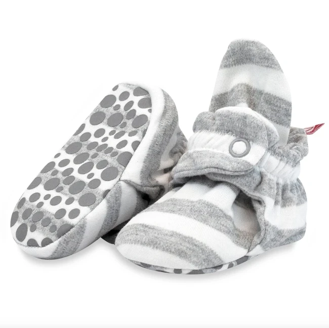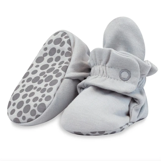 Our brand new Organic Cotton Gripper Booties offer GOTS certified 100% organic cotton interlock inside and out for extra comfort and softness at a lighter weight. Our signature two-snap secure fit helps them stay on even the most wiggly feet, putting an end to lost baby socks. Rubber grippers on the bottom help new walkers grip slippery floors when they start to take those momentous first steps.