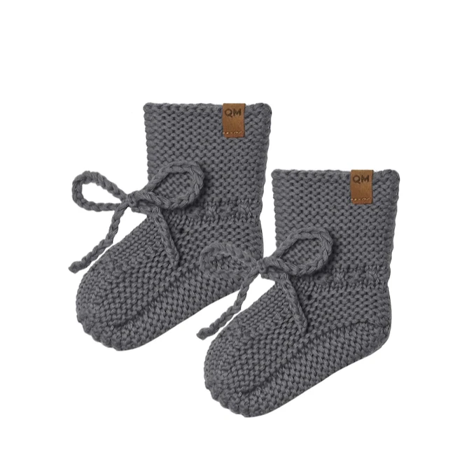 Adorable sweater knit booties with ties at the ankle for a secure fit.