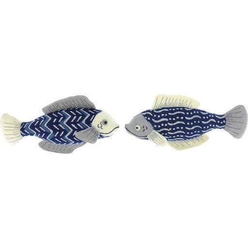 Bring the wonder and magic of the sea into your child’s nursery with these adorable fish! 100% Wool Felt and hand made in Jaipur, India. Designed by Fiona Walker in England, and inspired by Scandinavian colors and design, they are eye-catching, memorable, and filled with personality. Can easily be hung flush to the wall with a photo hook, or even a nail. They measure 14″W x 6″H x 3″D each.