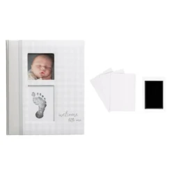 Record your precious baby’s milestones with Pearhead’s chevron babyprints babybook. This guided journal includes 50 fill-in pages to create a keepsake memory book for generations to enjoy. The chevron gray cover features an opening for your baby’s photo and hand or footprint. Capture baby’s print without creating a mess with the mess-free clean-touch ink pad. This babybook is perfect for any new parent looking to document and share those wonderful early memories. Also makes a great baby shower gift!
