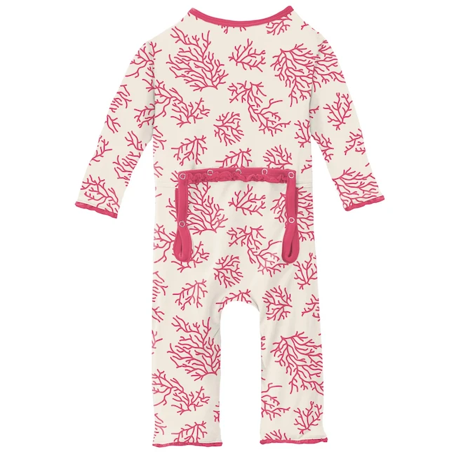 Good news! Our beloved Ruffle Coverall now comes with a zipper! Easy on and off. Just perfect for those middle of the night changes. Pair with coordinating blankets and hats for a shower gift made in heaven!