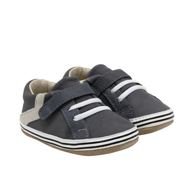 Adam First Kicks grey baby shoes are designed for comfort, security, and healthy foot development. The soft beige and grey tones are a versatile look for all your baby’s outfits. These popular leather baby shoes from Robeez are both fashionable and functional, allowing the full flexibility and range of motion your baby needs to grow. The genuine leather, soft sole, and easy-to-use adjustable closures make these kicks a delight to wear.