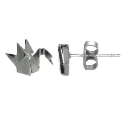 These sterling silver post earrings feature an origami crane, folded like the real thing. These earrings come on sterling silver posts with stainless steal ear-nuts.