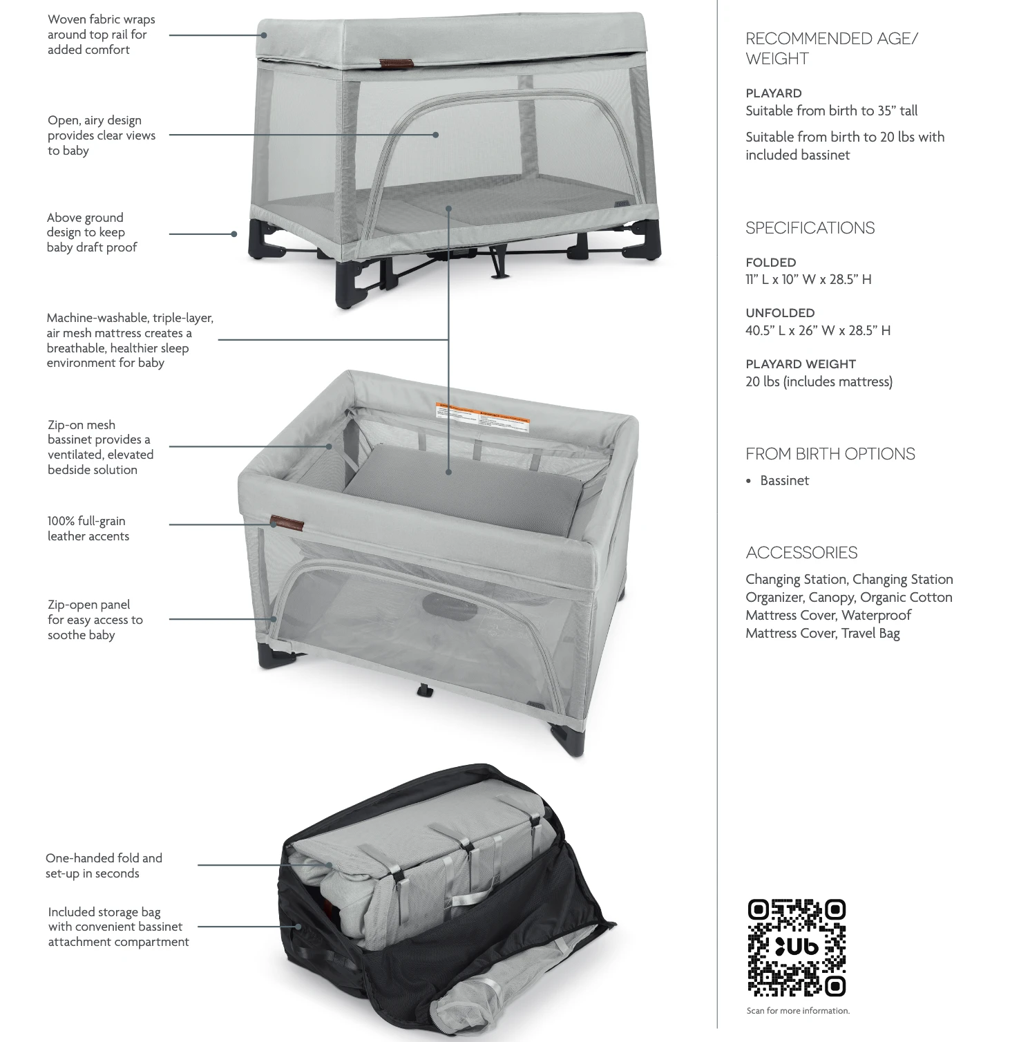 Make your travels easier with the all-new Remi Travel Crib & Playard by UPPAbaby! This new Playard features an ultra compact fold as well as a thought out design that will allow you to open it with just one hand! The included triple layer certified air mesh mattress will create a breathable, comfortable, and healthier sleep environment for baby. Plus, No need to bring along a bassinet as the Remi comes with one included!